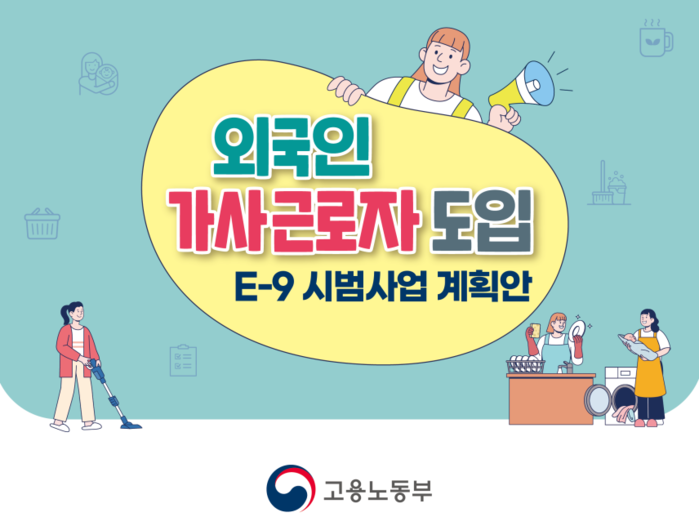 고용노동부가 7월 31일(월) 외국인 가사근로자 도입 시범사업 관련 공청회를 개최하고 이르면 하반기부터 외국인 가사·육아 서비스를 서울 전 지역에 시범 도입하기로 했다.