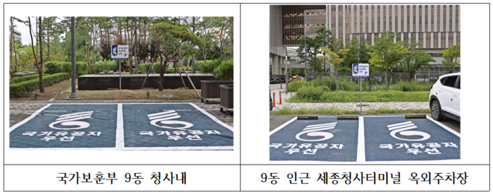 이를 위해 국가보훈부는 최근 정부청사관리본부와 협의를 거쳐 세종 보훈부 청사와 인근 세종청사터미널 옥외주차장에 ‘국가유공자 우선 주차구역’을 설치하고 운영에 들어갔다.