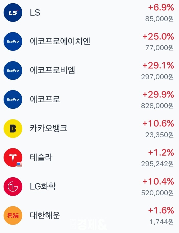 이러한 공매도를 한시적으로 금지하면서 개인투자자들이 반응하는 모양세다., 거의 모든 주식들이 상승하고 있고 특히 공매도에 취약한 주식들은 상한가를 기록하기도 하는 모양세다. 대표적모,,에코프로 주식들이 상한가를 기록하고 있는 이유이기도 하다