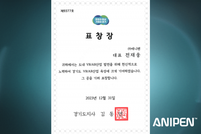 또한 애니펜은 VR·AR 산업 발전을 위해 노력해 경기도 VR·AR 산업 육성에 기여한 점을 인정받아 경기도지사 표창을 수상했다. 경기도 창업 기업으로서 경기콘텐츠진흥원이 주관한 상생 오픈이노베이션 지원 사업을 통해 디지털 트윈 기반의 3차원 공간을 구축해 3D 콘텐츠를 포함한 카탈로그 제작이 가능한 기반을 마련하는 프로젝트를 완수했다.