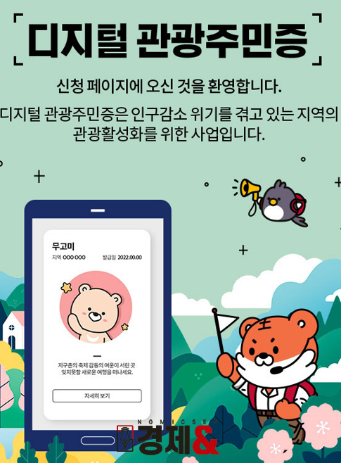 디지털 관광주민증은 지방소멸 위기를 겪고 있는 인구감소지역을 대상으로 발급하는 일종의 명예 주민증으로 이용자에게 다양한 여행 혜택을 제공해 지역관광을 활성화하고 생활인구를 확대하기 위한 사업이다.