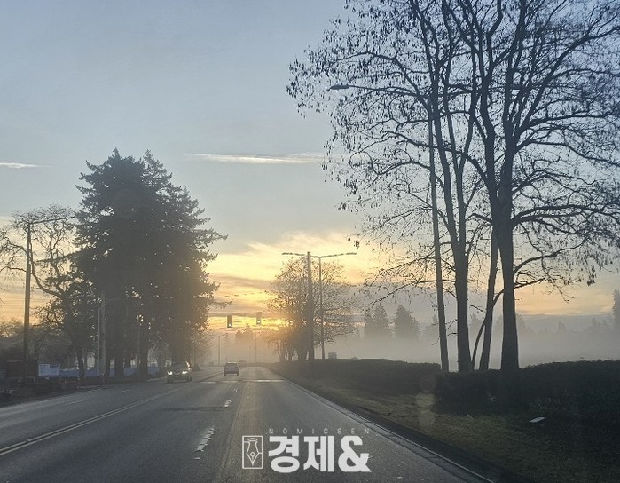 눈부신 아침 태양이 서서히 모습을 드러내고 있다.