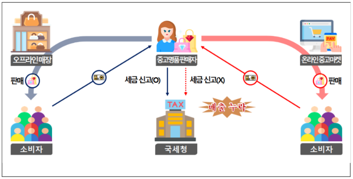또한, 당근마켓·중고나라·번개장터 등의 온라인 중고마켓에서는 오프라인 사업장과는 달리 판매자의 실명 및 거래액을 확인하기 어려운 점을 악용한 일부 판매자는 오프라인 매장을 운영하고 있는 명백한 사업자임에도 불구하고, 온라인 중고마켓에서 비사업자로 위장해 고가의 물품을 다수 판매했다.