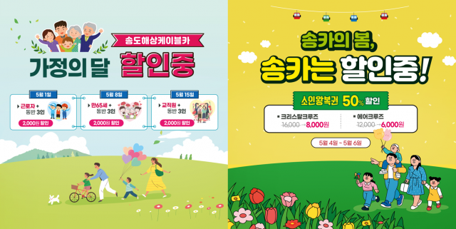 [경제엔=온라인팀] 송도해상케이블카가 5월 가정의 달을 맞아 기념일에 맞춘 다양한 할인과 이벤트를 펼친다.