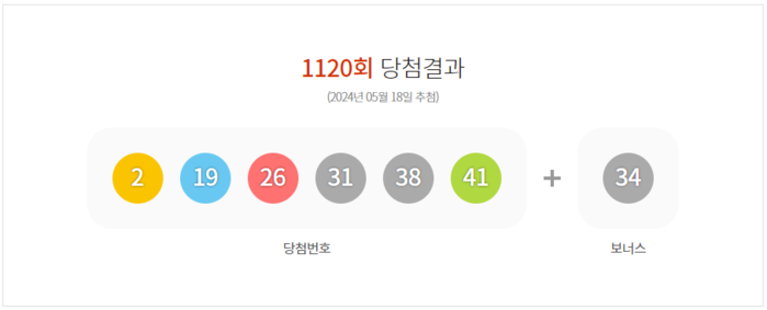 2등 보너스 번호는 ’34‘번이다. 5개 번호와 보너스 번호를 맞힌 2등은 91게임으로 각 5081만 원씩의 당첨금을 받을 수 있다.