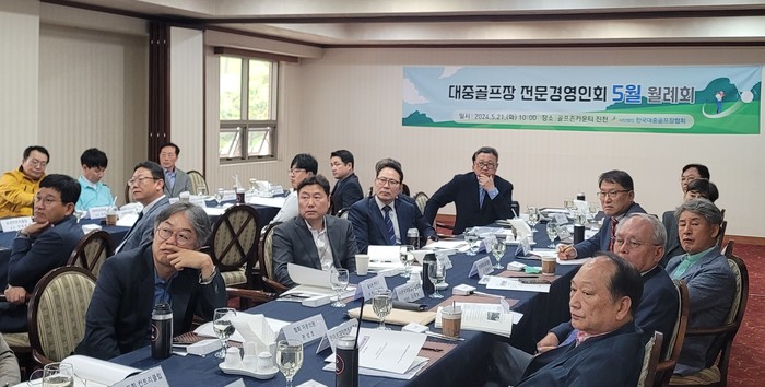 한국대중골프장협회가 지난 21일 충북 진천에 위치한 ‘골프존카운티 진천’에서 ‘대중골프장 전문경영인회’ 5월 월례회를 개최했다.