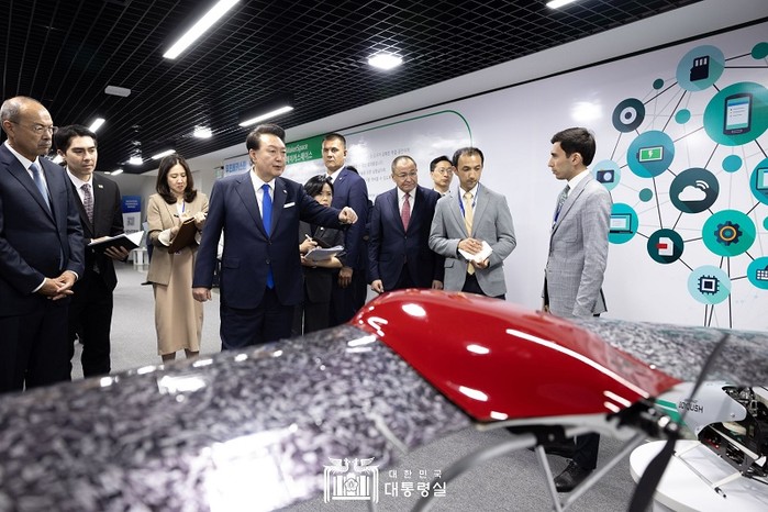 | ▲윤석열 대통령이 13일 오후(현지시간) 우즈베키스탄 타슈켄트 창업촉진센터를 방문해 제조와 창작을 위한 장비와 시설이 구비된 ‘매이커스페이스’를 둘러보고 있다. / 사진=대통령실 홈페이지 제공 |