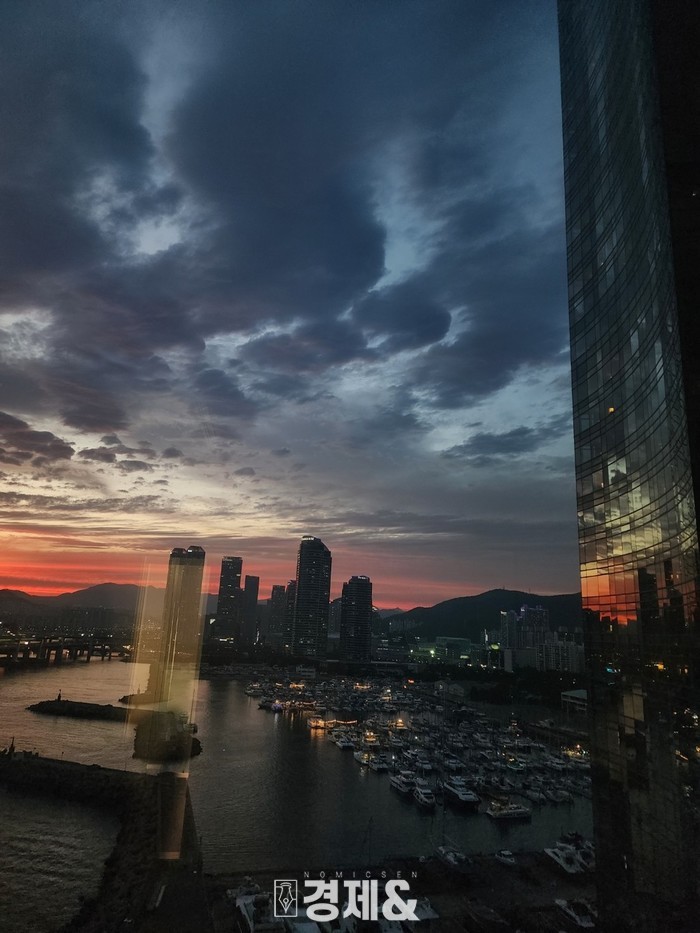 해운대 앞 호텔에서 바라본 아름다운 석양