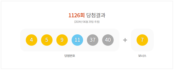 추첨 결과 1등 당첨번호는 '4, 5, 9, 11, 37, 40‘ 이며 1인당 23억 8638만 원씩의 당첨금을 수령한다.