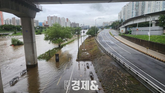 ▲오후 6시 현재 월릉교에서 바라본 동부간선도로-차량통행이 전면 금지되고 있다 / 사진=경제&