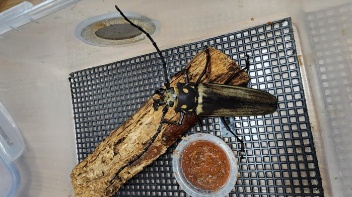 | ▲광릉숲에서 올해에도 발견된 장수하늘소-사육통에 적응중인 모습 / 사진=산림청 제공 |