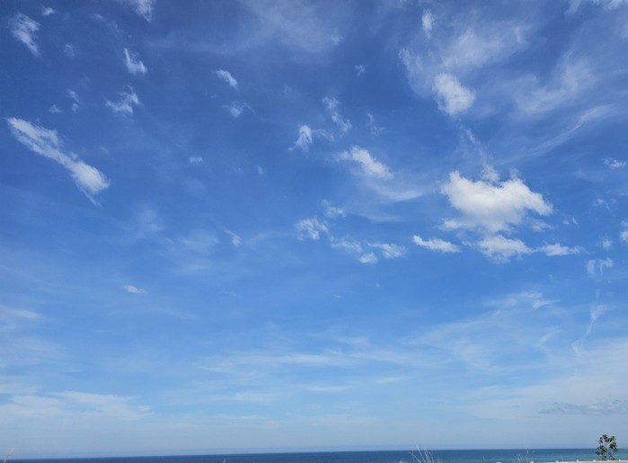 장마가 그친 동해바다. 수평선과 맞다아 더푸른 하늘