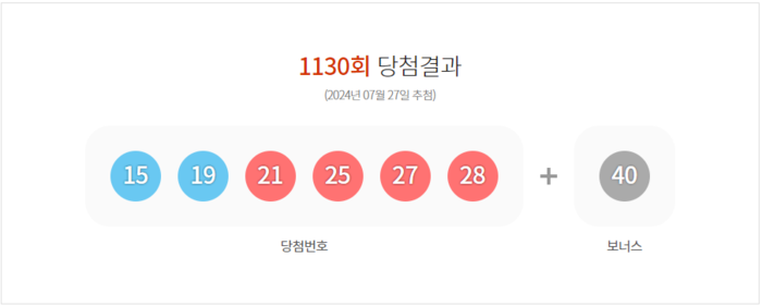 추첨 결과 1등 당첨번호는 '15, 19, 21, 25, 27, 28‘ 이며 1인당 22억 6330만 원씩의 당첨금을 수령한다.