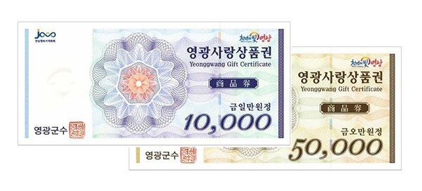 ▲지자체가 발행하고 있는 지역사랑상품권 견본-사진은 영광군이 발행한 영광사랑상품권