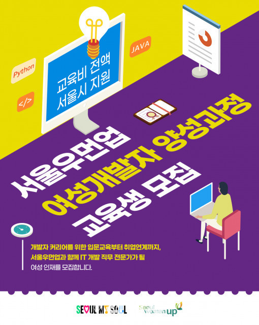 [경제엔=윤재우 기자] 서울특별시여성능력개발원(원장 국미애)은 서울시에서 지원하는 ‘서울우먼업 여성개발자 양성과정’의 8월 교육과정 참여자를 모집한다고 밝혔다.