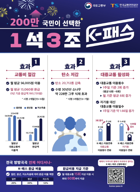 아울러 K-패스는 대중교통 활성화를 통한 탄소저감 등 친환경 효과도 컷다.