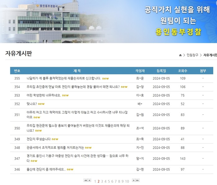 | ▲ 용인동부경찰서 홈페이지 자유게시판 |