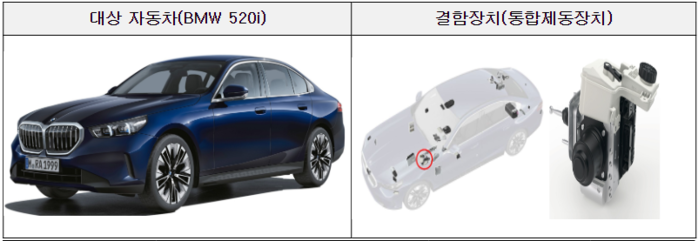 먼저 BMW 520i 등 62개 차종 6만8428대는 통합제동장치 품질 불량으로 제동성능이 저하될 가능성이 있어 지난달 28일부터 시정조치를 진행하고 있다.