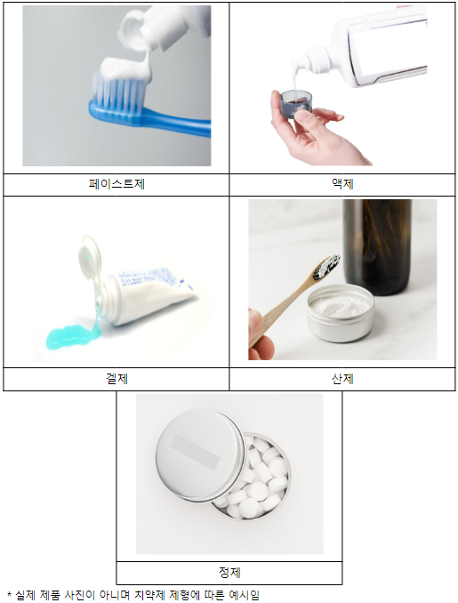 | ▲치약제 제형별 사진 / 사진=식품의약품안전처 제공 |