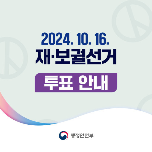 행정안전부는 10월 16일 실시되는 재·보궐선거를 앞두고 9월 24일부터 9월 28일 오후 6시까지 거소투표 신고를 접수한다고 23일 밝혔다.