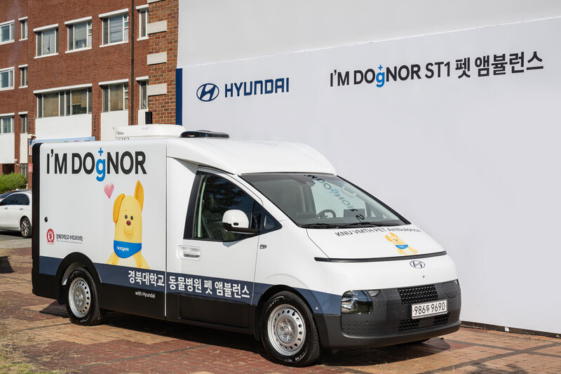 현대차는 경북대 아임도그너 헌혈센터 개소와 함께 현대차 최초의 전동화 비즈니스 플랫폼 ‘ST1’을 기반으로 새롭게 개조한 ‘펫 앰뷸런스’도 기증한다.