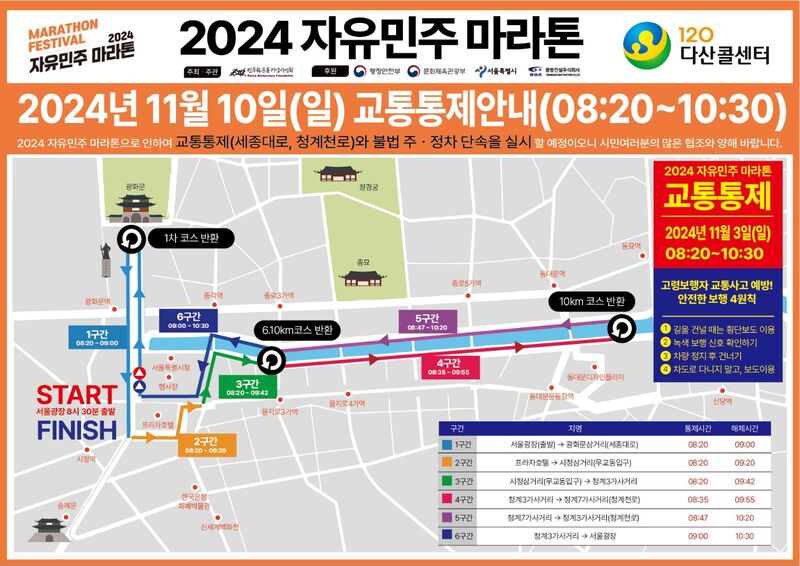 10일 열리는 2024 자유민주 마라톤 교통통제 안내