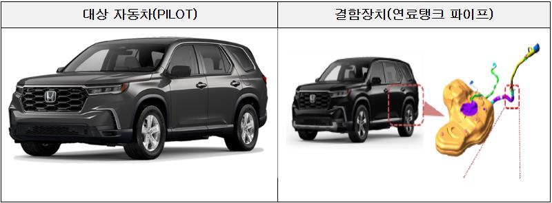 혼다 PILOT 245대는 연료탱크 파이프와 연료 주입구의 체결 불량에 따른 연료 누출 가능성으로 20일부터 시정조치에 들어간다.