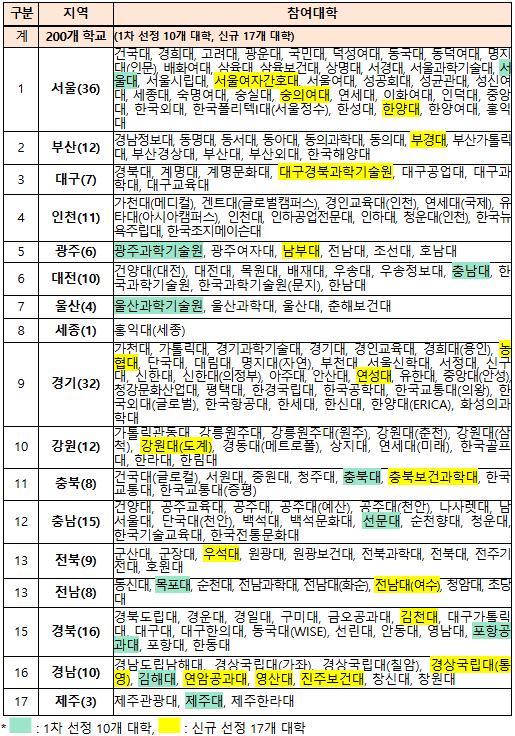 올해 ‘천원의 아침밥’ 사업에는 농식품부와 수도권 79개교(서울시립대, 경희대 등), 충청권 34개교(한국과학기술원, 충북대 등)를 포함한 전국 200개 대학이 함께 한다.