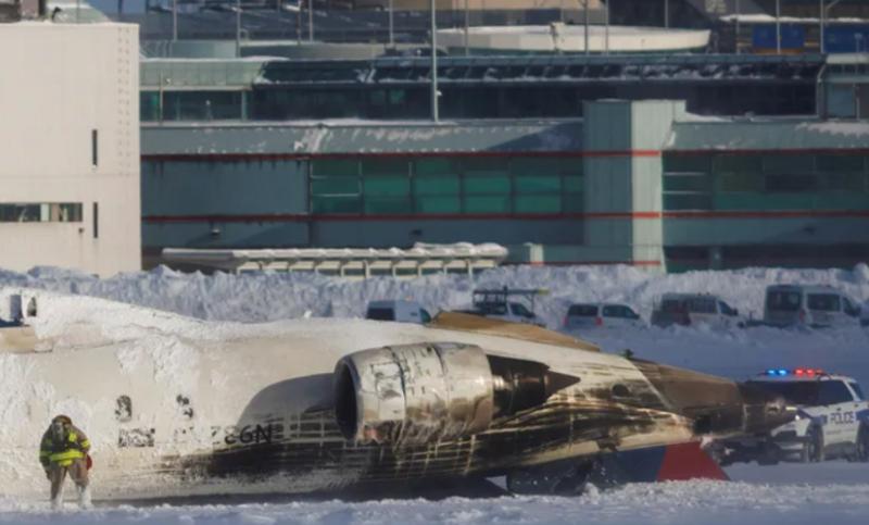 캐나다 토론토 피어슨 국제공항에서 비행기가 뒤집히는 사고가 발생했다.