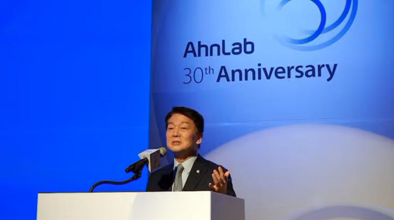 안철수 창업자가 안랩 창립 30주년 기념식에서 환영사를 하고 있다/사진=안랩 제공