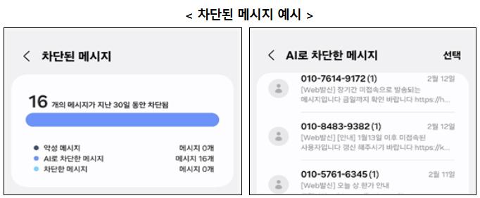 삼성전자와 방통위, 한국인터넷진흥원은 지난해 9월부터 이 기능을 개발해왔으며, 사용자는 자동 차단된 메시지 중 필요한 경우 차단을 해제하거나 확인할 수 있다.
