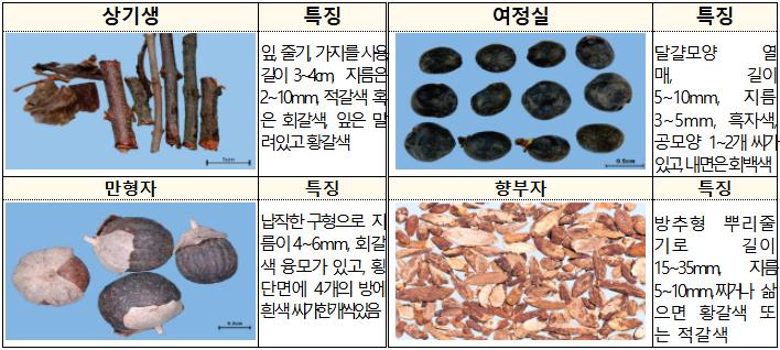 이번 점검은 지난달 11일부터 15일까지 온·오프라인 판매업체 630곳(온라인 450건, 약령시장 등 오프라인 180곳)을 대상으로 실시됐다. 점검 결과, 일부 업체가 식용 불가 농·임산물인 ▲상기생 ▲만형자 ▲향부자 ▲여정실 등을 판매한 것으로 확인됐다.