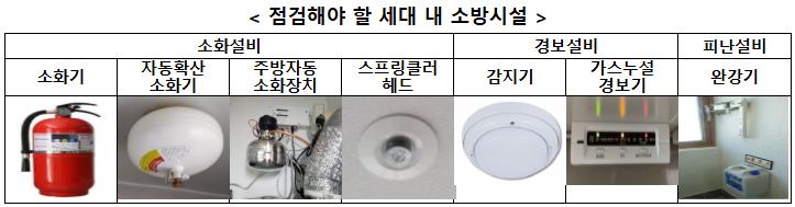 하지만 세대 내 점검의 경우 사유 공간이라는 특성과 입주민 부재 등의 현실적인 이유로 원활한 진행이 어려운 상황이었다. 이에 따라 소방청은 관리자(관리소장, 입주자 대표회의, 안전관리자 등) 또는 입주민 스스로 소방시설을 점검할 수 있도록 ‘공동주택 세대점검 제도’를 마련했다.