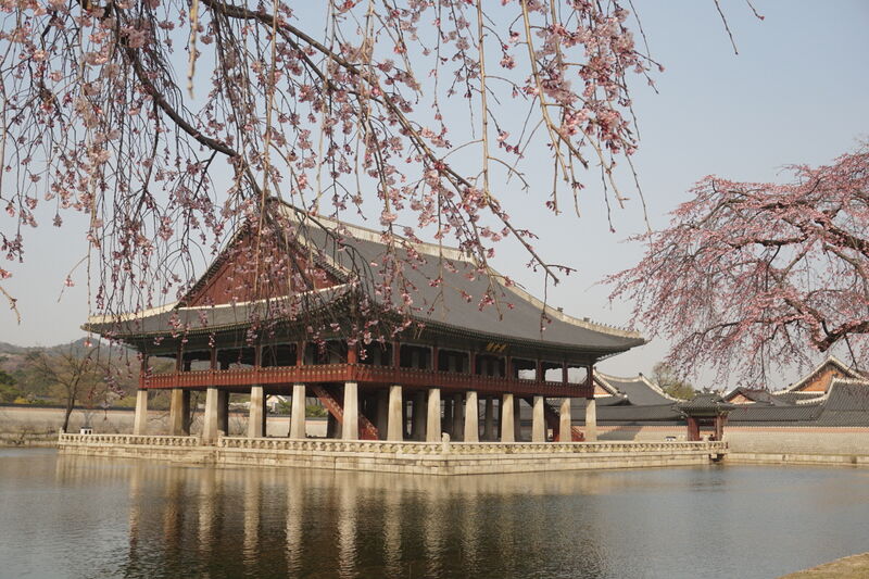 능수벚꽃 흐드러진 경복궁 경회루/사진=정윤배 작가
