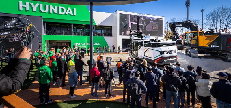 HD현대건설기계는 ‘인텔리전트 파크’를 테마로, 약 3500㎡ 규모의 전시공간을 마련해 20여 종의 최신 장비와 스마트 건설기술을 소개했다. 특히 기후 보호 부문 ‘바우마 혁신상’ 최종 후보에 오른 수소굴착기의 실물 시연이 현장에서 큰 주목을 받았다.