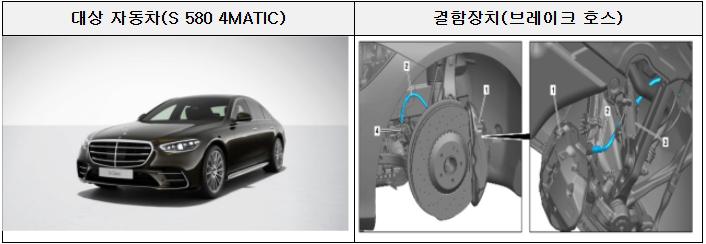 메르세데스벤츠코리아는 S 580 4MATIC 등 9개 차종 1만7285대에서 브레이크 호스의 내구성 부족으로 인해 브레이크 오일이 누출될 가능성이 확인돼 4월 11일부터 리콜을 실시한다.