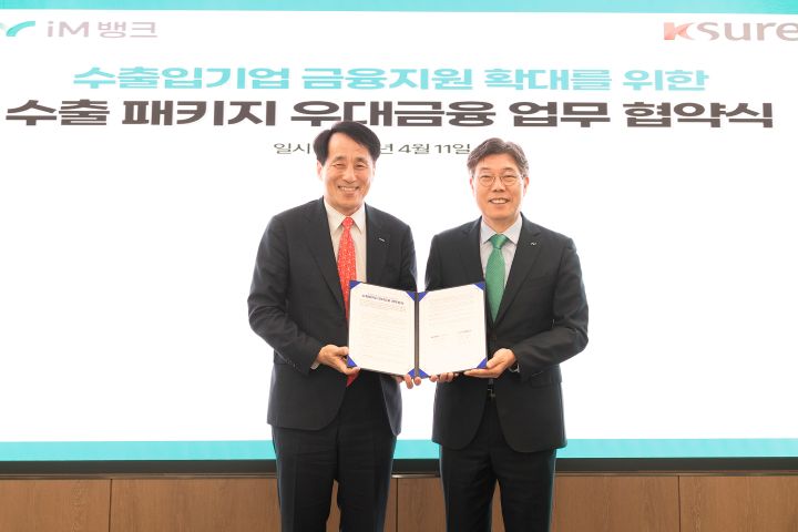 iM뱅크는 11일 서울 중구 iM금융센터에서 한국무역보험공사와 ‘수출 패키지 우대금융지원 협약’을 체결했다고 밝혔다.