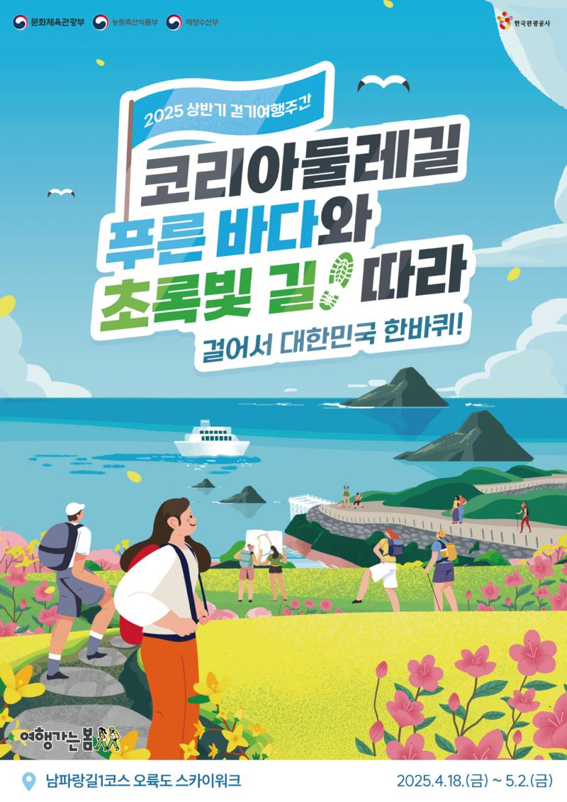 문화체육관광부는 한국관광공사와 함께 4월 18일부터 5월 2일까지 ‘2025년 상반기 걷기여행주간’을 운영한다고 밝혔다.