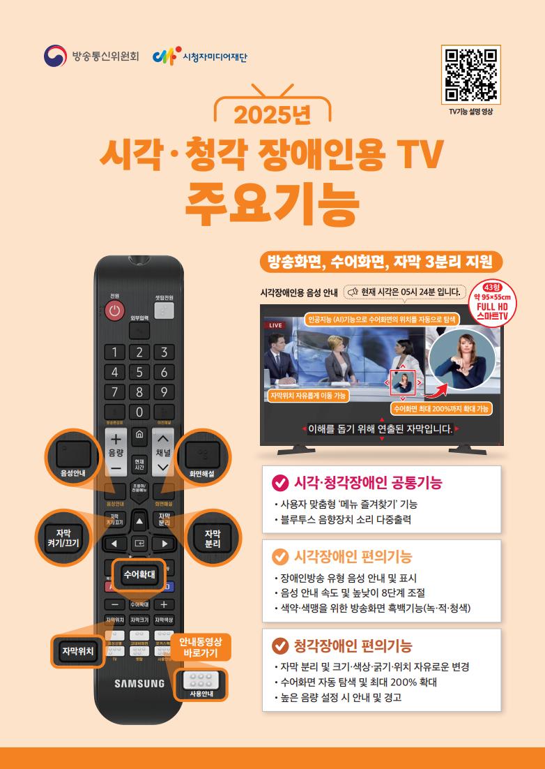특히 ▲메뉴 음성 안내 ▲자막 및 수어 화면 분리 기능 ▲수어 방송 화면 비율 확대 등 장애인의 방송 접근성을 고려한 다양한 기능을 갖췄다. 또 고화질 스마트 TV로 제공돼 보다 선명하고 편리한 시청 환경을 제공할 예정이다.