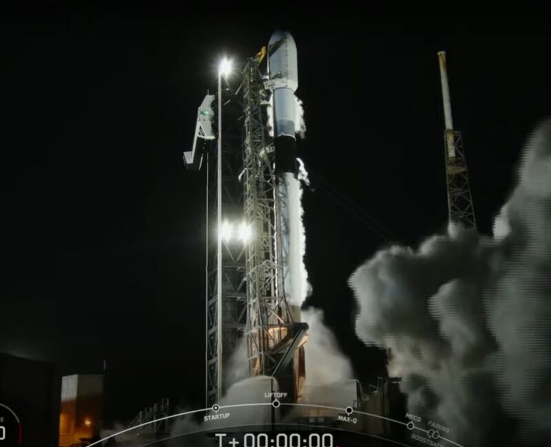 4월 22일 오전 9시 48분(한국시간) 미국 플로리다주 케이프 커너베럴 우주군기지에서 대한민국 정찰위성 4호기가 실린 스페이스X사의 팰컨-9 발사체가 발사되고 있다/사진 출처=스페이스X