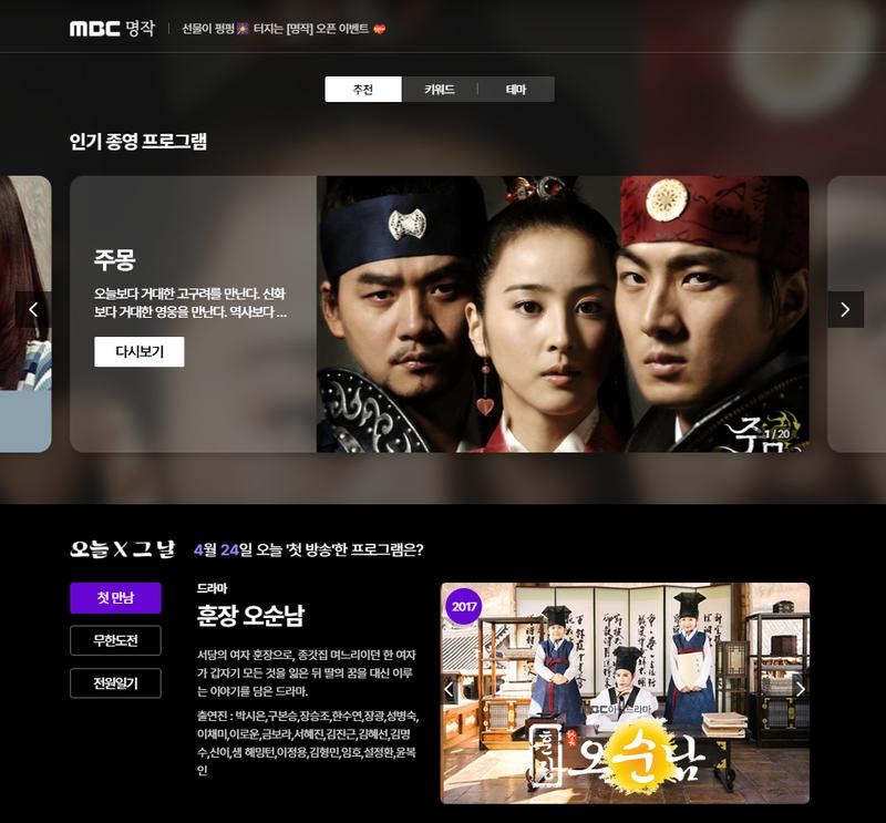 iMBC.com MBC 명작서비스 메인 화면/이미지=MBC 제공