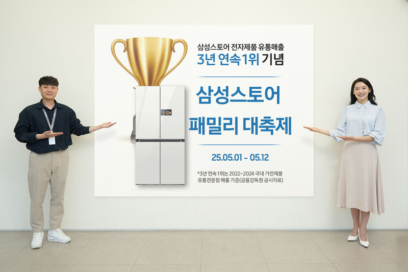 삼성스토어가 전자제품 유통 부문에서 3년 연속 매출 1위를 달성한 것을 기념해 5월 1일부터 12일까지 전국 매장에서 ‘패밀리 대축제’를 진행한다.