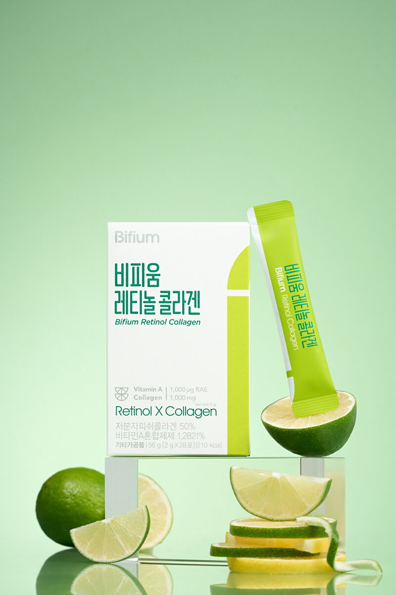 비피움 라인의 인기 요인은 성분의 차별성에 있다. ‘비피움 레티놀 콜라겐’은 스위스산 레티놀 1,000마이크로그램(μg)과 500달톤(Da)의 저분자 피쉬콜라겐 1000밀리그램(mg)을 1포에 담아, 피부 건강을 위한 시너지 효과를 제공한다.
