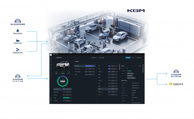 KGM이 유럽 탄소중립 규제 대응 및 카테나엑스(Catena-X)를 기반으로 한 제품탄소발자국 시스템 구축을 위해 글래스돔과 시범 사업 계약을 체결했다(사진은 제품탄소발자국 시스템 구축 예시) /이미지=KGM 제공
