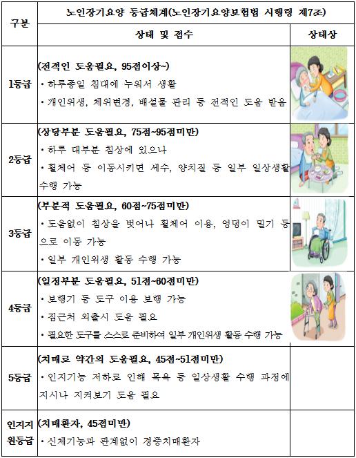 65세 이상 노인 및 65세 미만 노인성 질환자를 대상으로 하는 장기요양등급의 갱신 유효기간이 최대 5년으로 연장된다.