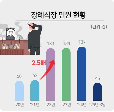 국민권익위원회가 최근 5년 3개월(2020년 1월~2025년 3월)간 민원정보분석시스템에 접수된 장례식장 관련 민원 551건을 분석한 결과를 26일 공개했다.