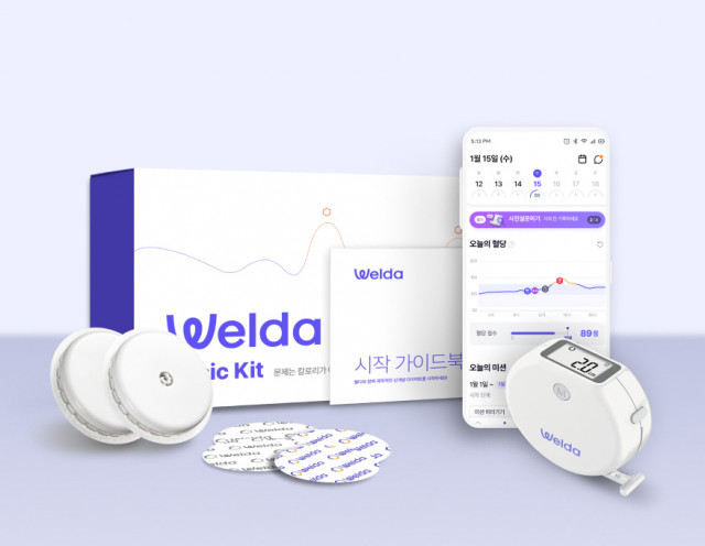 혈당 관리 솔루션 ‘웰다’ 키트 구성 및 앱 연동 화면/사진=대웅 제공