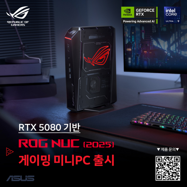 글로벌 IT 기업 에이수스 코리아가 인텔® 코어™ 울트라 9 프로세서(시리즈 2)와 최신 NVIDIA® 지포스 RTX™ 5080 GPU를 탑재한 고성능 게이밍 미니 PC ‘ROG NUC 2025’를 공식 출시했다고 9일 밝혔다.