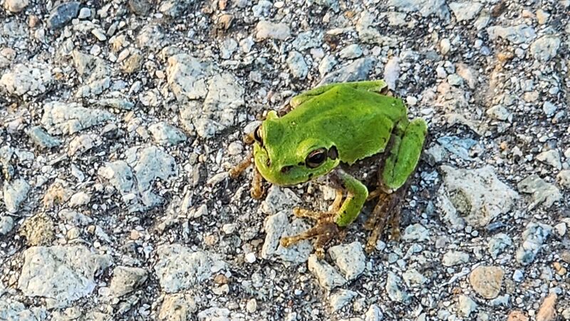 이른 아침 인도로 산책 나온 청개구리/사진=경제엔미디어