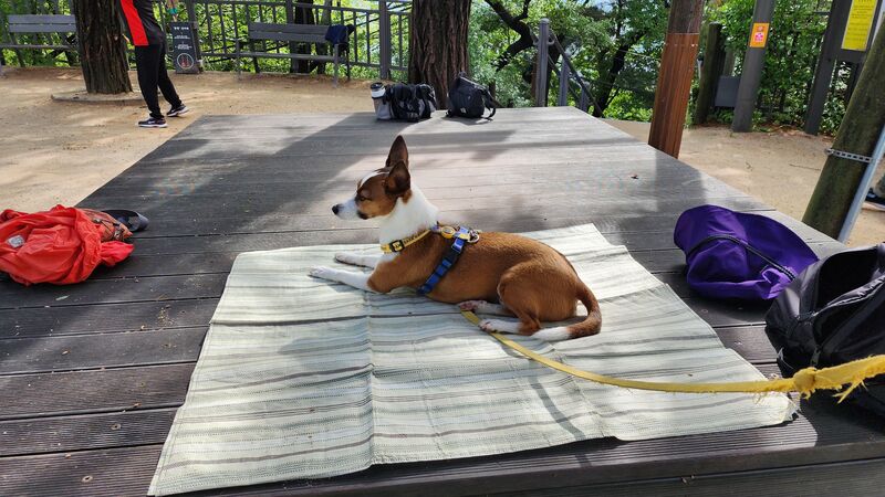운동 중인 견주를 기다리는 반려견/사진=경제엔미디어